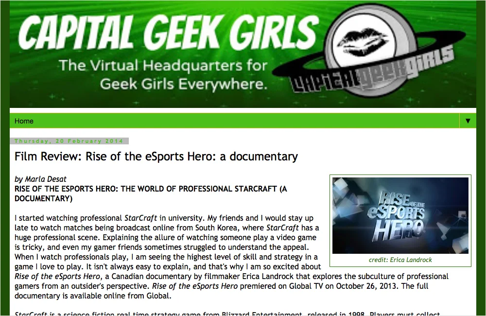 Film Review: Rise of the eSports Hero - Capital Geek Girls - February 20, 2014 // Rise of the eSports Hero
